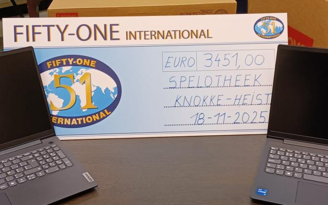 De Sint was dit jaar nogal vroeg bij Spelotheek De Wip. Als Piet-van-dienst overhandigde de serviceclub Fifty-One Knokke-Heist op 18 november 2025 aan de coördinator Karolien Schotte vijf spiksplinternieuwe laptops. De Wip is een veelzijdige organisatie die lokaal ondersteuning biedt voor onderwijs, opvoeding en vrijetijdsbesteding.